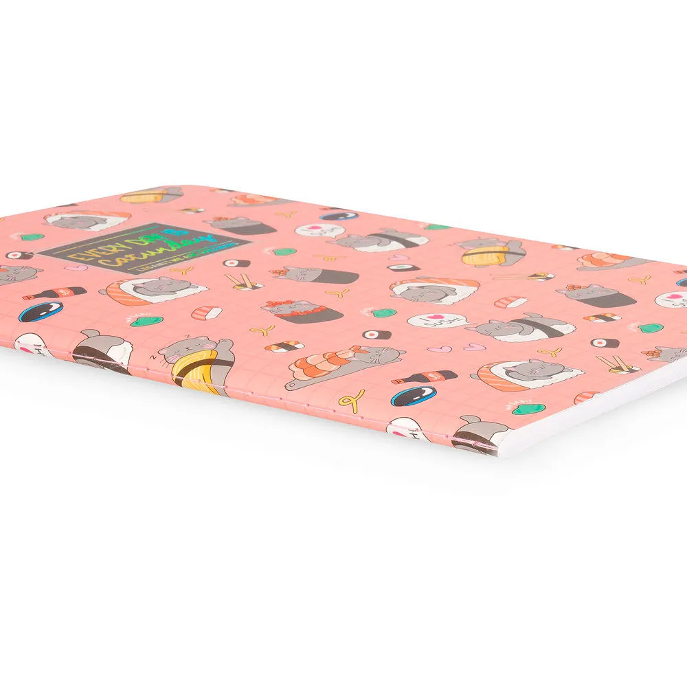 Ideal for creative minds and those who like to colour outside the lines Sushi Cat-themed unlined notebook. Measurements: 14.2 x 21 cm. 80 pages in FSC®-certified thick paper (100 gr/m²). Jotter for Drawings, Diagrams, and Visual Notes for School, University, Work and Home.