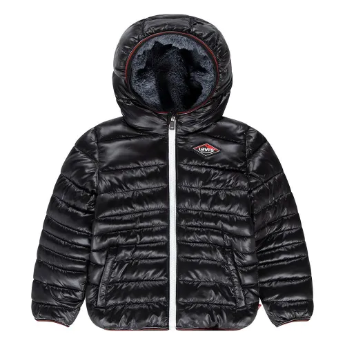 The LEVI'S® KIDS Sherpa Lined MDWT Puffer Jacket in Black is a stylish and functional jacket for boys. Made from durable materials, this jacket is perfect for keeping your child warm and protected during cold weather.