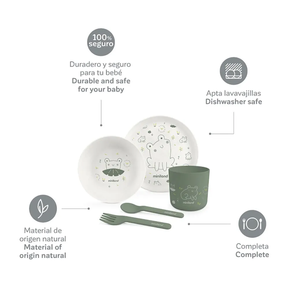 The 5-piece set consists of a fl at plate for solid food a bowl that´s ideal for baby food.