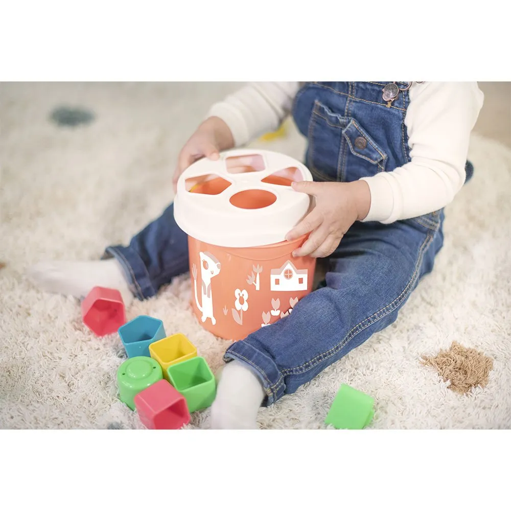Cube of nestable shapes Salmon Lace game that helps recognize different shapes and colors.