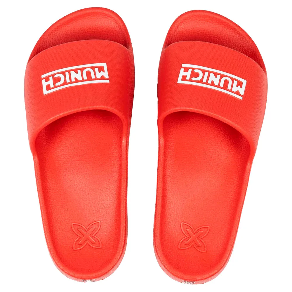 Step into ultimate comfort with the MUNICH Tabar Slides, engineered for active boys and girls. Perfect for the pool, beach, or post-sport relaxation, their single-piece molded EVA design is incredibly durable, lightweight, and completely water-friendly. The ergonomic footbed cushions every step, while the quick-drying, easy-to-clean material offers unbeatable practicality. Finished with the iconic MUNICH "X" logo, these slides blend a sleek, urban style with all-day comfort, making them an essential for every adventure