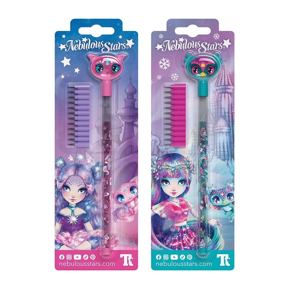 The NEBULOUS Multipoint Pencil is more than just a writing instrument; it´s a portal to the enchanting universe of Nebulous Stars. Each pencil is beautifully adorned with the dreamy, star-filled artwork and characters that define the brand, inspiring stories and adventures with every stroke. The vibrant selection of colors included has been carefully chosen to bring nebulae, galaxies, and mystical creatures to life. From deep cosmic blues and purples to brilliant star-like yellows and pinks, the range provides everything needed for detailed illustrations, colorful school projects, or simply doodling fantastic new worlds.