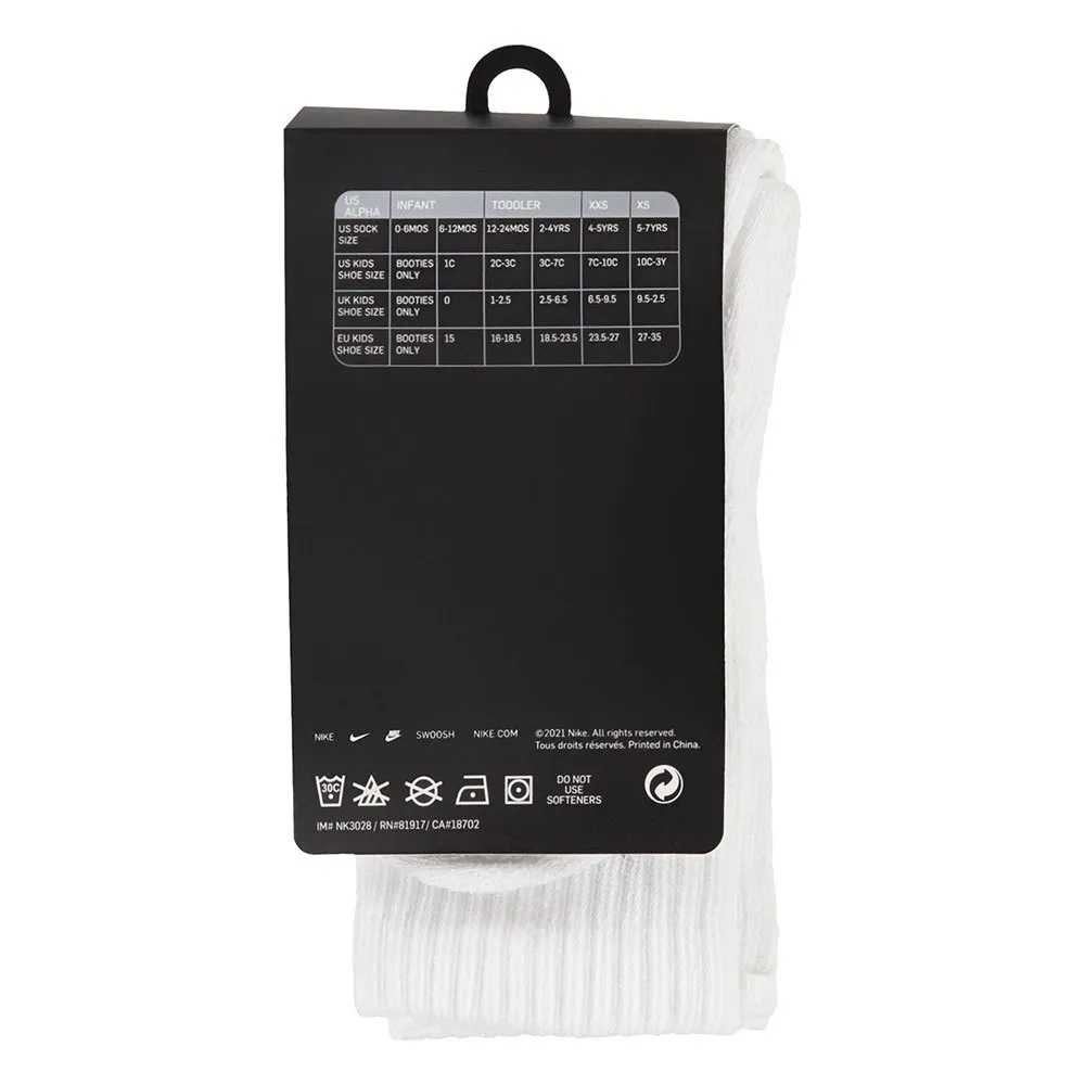 Overall, the NIKE KIDS Basic Pack Crew 3Pk Socks in White are a reliable and stylish addition to any child's wardrobe, offering durability, comfort, and a classic design.