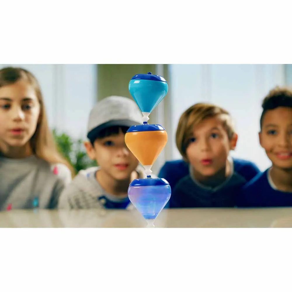 The set includes two high-performance E-Spin Energy peonzas, perfectly balanced and engineered for endurance. Their unique design is not only visually appealing but also functional, as the tops are Nestable, allowing for creative stacking possibilities and convenient storage. With two tops included, the action can begin right out of the box, encouraging social interaction, friendly competition, and strategic thinking as kids learn to battle and out-spin their opponents. It´s the perfect activity for playdates, family game nights, or solo practice to master the ultimate long-duration spin.