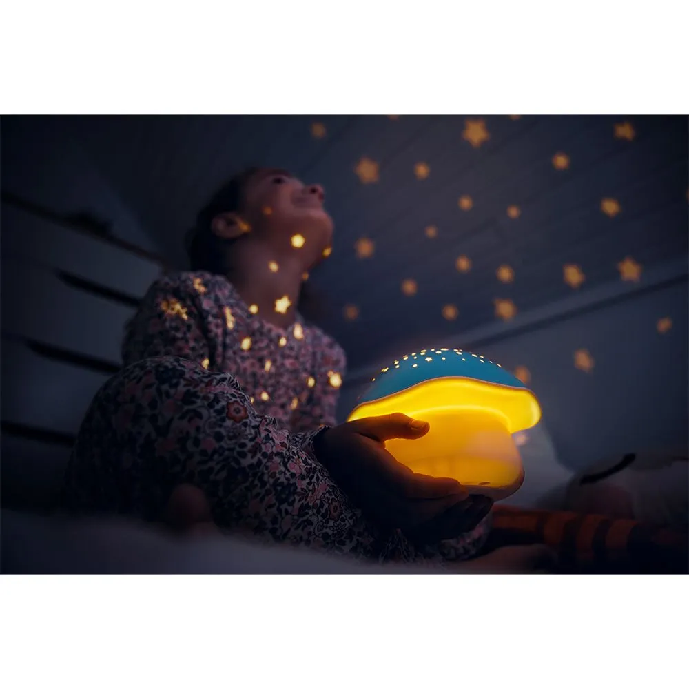 The mushroom star projector is ideal for falling asleep peacefully.