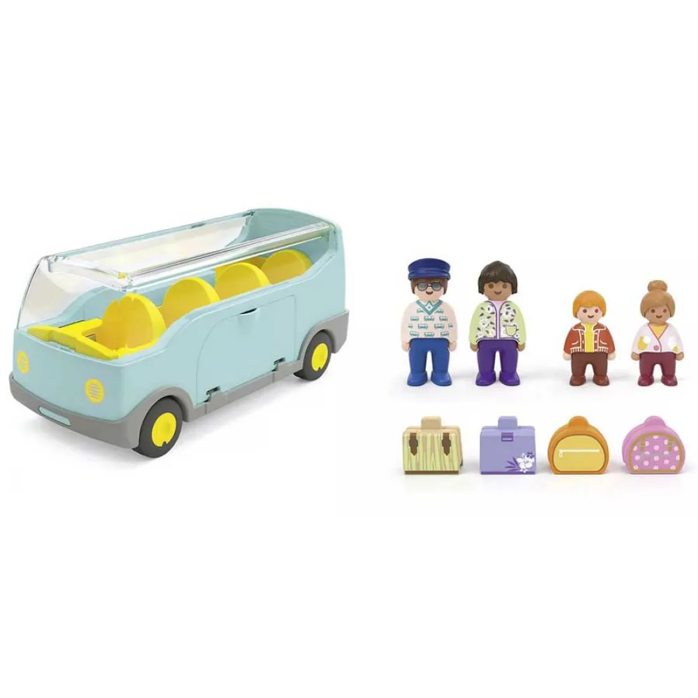 - Figures: 1 woman, 1 man, 1 girl, 1 boy Accessories: 1 bus, 4 suitcases