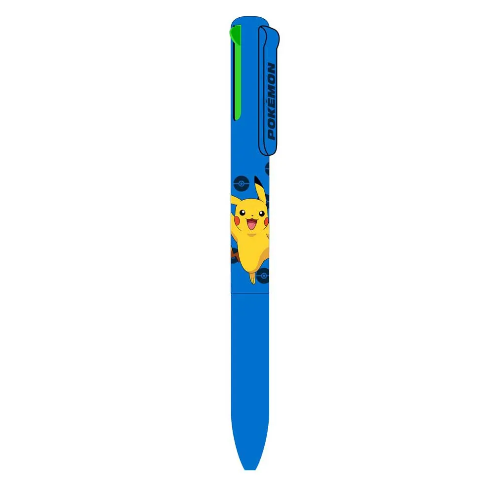 four-color pokémon ballpoint pen in blue with the design of pikachu.