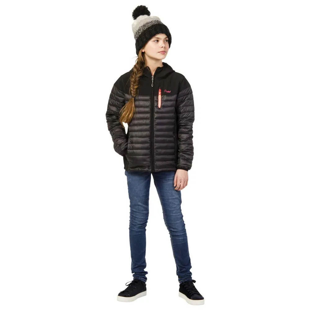 The Protest Parini JR outerwear jacket is stylish, comfortable, and warm. It’s the perfect final layer featuring an all-over print, with colour contrast front zipper pocket and fixed hood. The Teflon fabric protector prevents stains from forming and the material is treated to repel water. Stretch bindings along the hood and cuff ensure a snug and comfortable fit. The soft shell jacket provides a padded quilted front and sleeves, ensuring warmth, while remaining light, breathable, and of course fun.