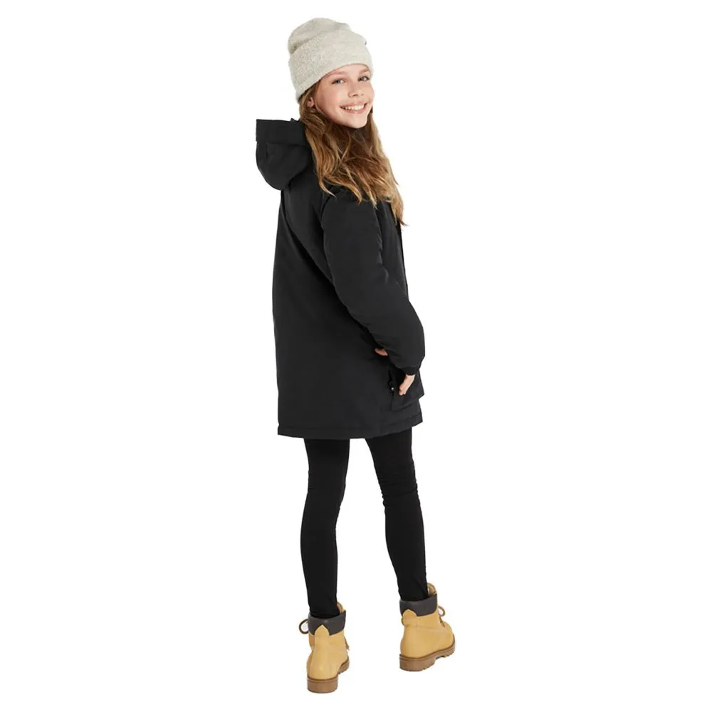 If you are looking for a snow jacket that is both practical and stylish, then meet the PRTSTELLA JR by Protest. This lovely snow jacket has a longer length and a tailored fit, which is perfect for keeping wrapped up warm. The PRTSTELLA JR has critically taped seams, a fixed hood, a lovely high collar, and 10K water resistance and 10g breathability ratings for keeping you warm and dry. It is also PFC-free; we used an eco-friendly finish instead of harmful PFCs, which is better for the environment. The inner cuffs are both comfortable and practical, and the zipper closure with additional hook-and-loop fastener gives you extra protection from wet and cold conditions. And how about those lovely stylish pockets and the pocket for storing your lift pass. The PRTSTELLA JR, for fun-packed days in the outdoors.