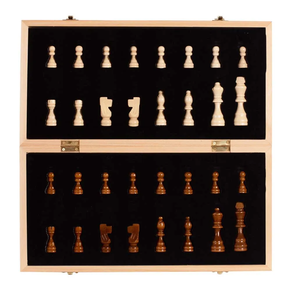 Chess set with a folding wooden board with a high-quality finish so that adults and children can enjoy this game. It includes perfectly defined squares and alphanumeric notation to facilitate learning and game analysis.