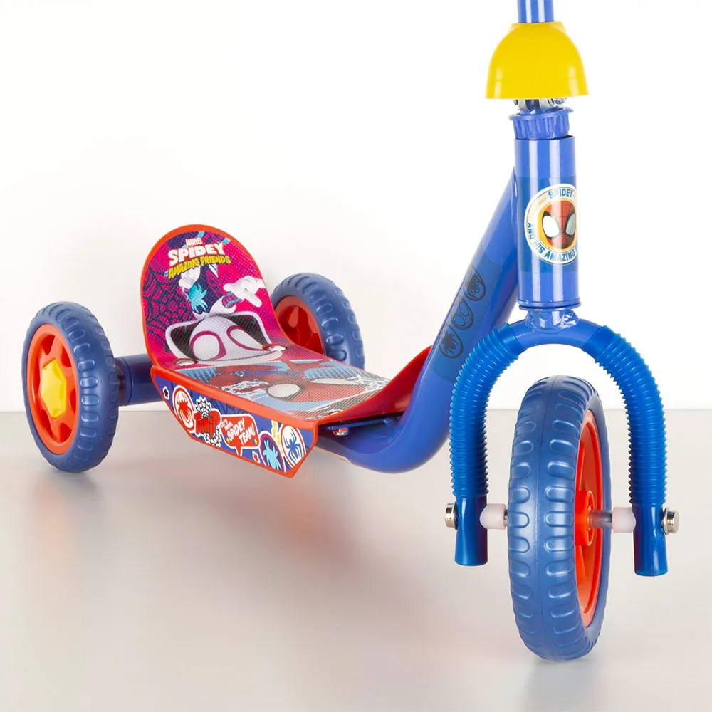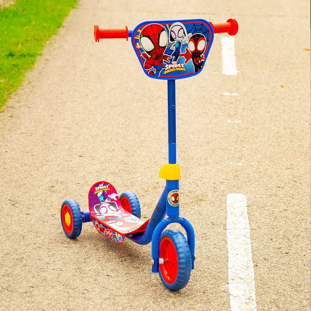 Start the wheeled adventure with Spidey! Accompany your little one on their first fun, safe, and colorful rides with the officially licensed Marvel Spidey three-wheeled scooter for kids.