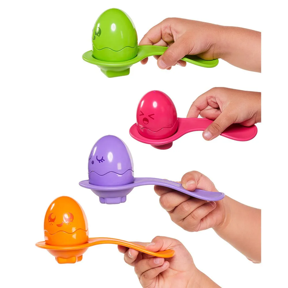 fit for shapes, couples, enjoy the sound, stack the eggs and the older ones will discover new and imaginative ways of playing! Egg race with spoon!.