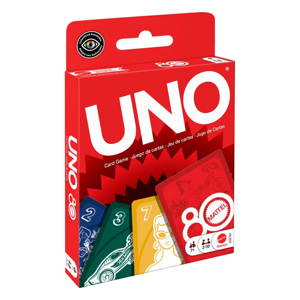 Fans of the cool toys and games that Mattel has created over the years will love playing the Mattel 80th Anniversary UNO Ruby Red card game.