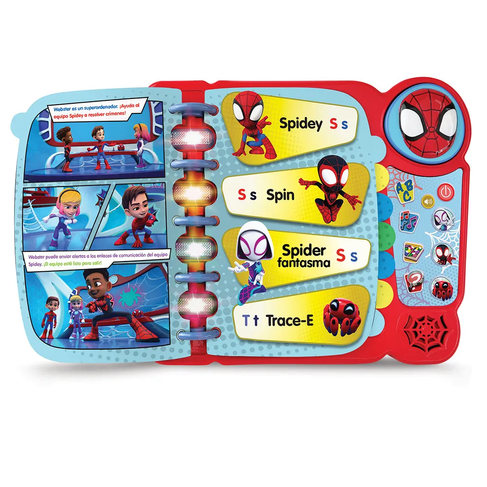 Join Spidey & his friends in the Aprendo a leer con Spidey by VTech featuring 14 illustrated interactive pages & 4 fun-packed learning modes.
