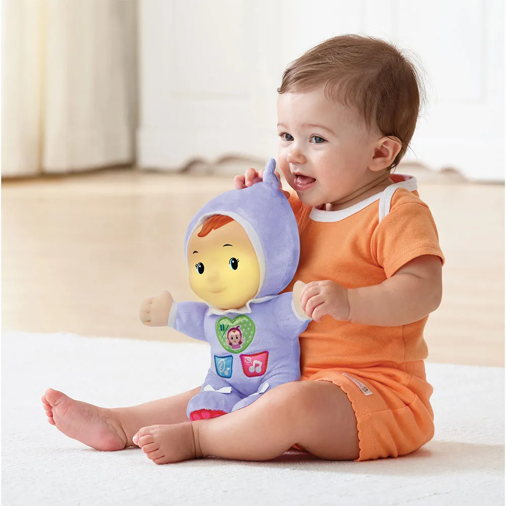 Velour fabric and soft buttons make it easy to interact with the baby doll.