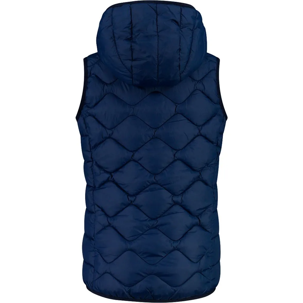 Chaleco con pespuntes geométricos acolchado con fibras sintéticas flocadas de tacto cálido que no solo son aislantes y ligeras sino también poco voluminosas.