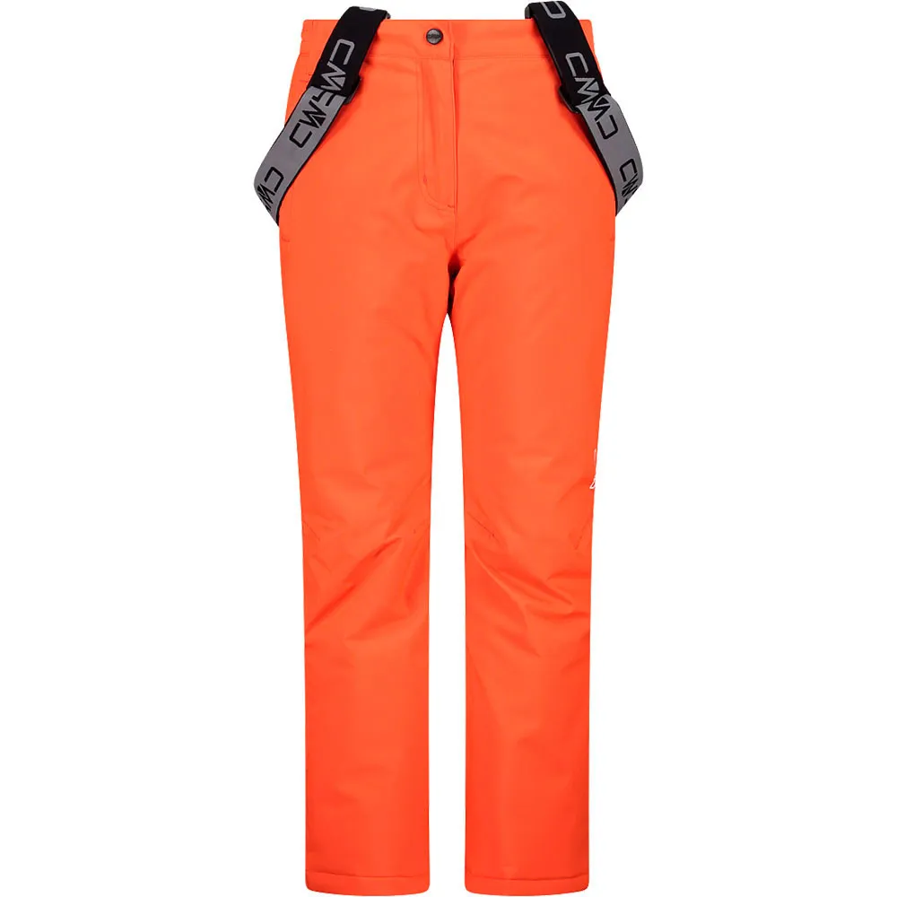 Pantalón con tirantes ajustables, polaina para la nieve en la parte inferior, dos bolsillos con cremallera.