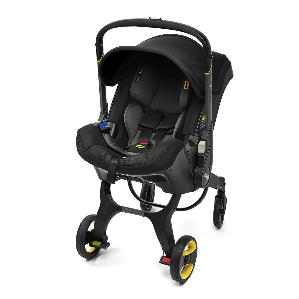 La carcasa única de doble pared de Doona, que permite el plegado de las ruedas dentro de la estructura, aporta un importante beneficio de seguridad añadida. Las dos capas de resistente plástico absorbe-impactos, junto a capas adicionales de EPS, espuma y tejidos proporcionan una mejora de la protección del bebé a impactos laterales en caso de accidente.