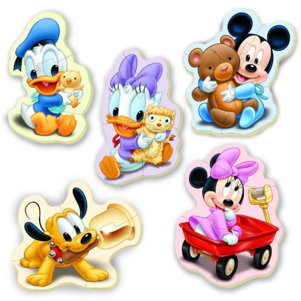 Mickey Mouse 5 baby puzzles progresivos de 3 a 5 piezas para construir las figuras de Mickey Mouse, Donald, Pluto, Minnie y Daisy y jugar con ellas.