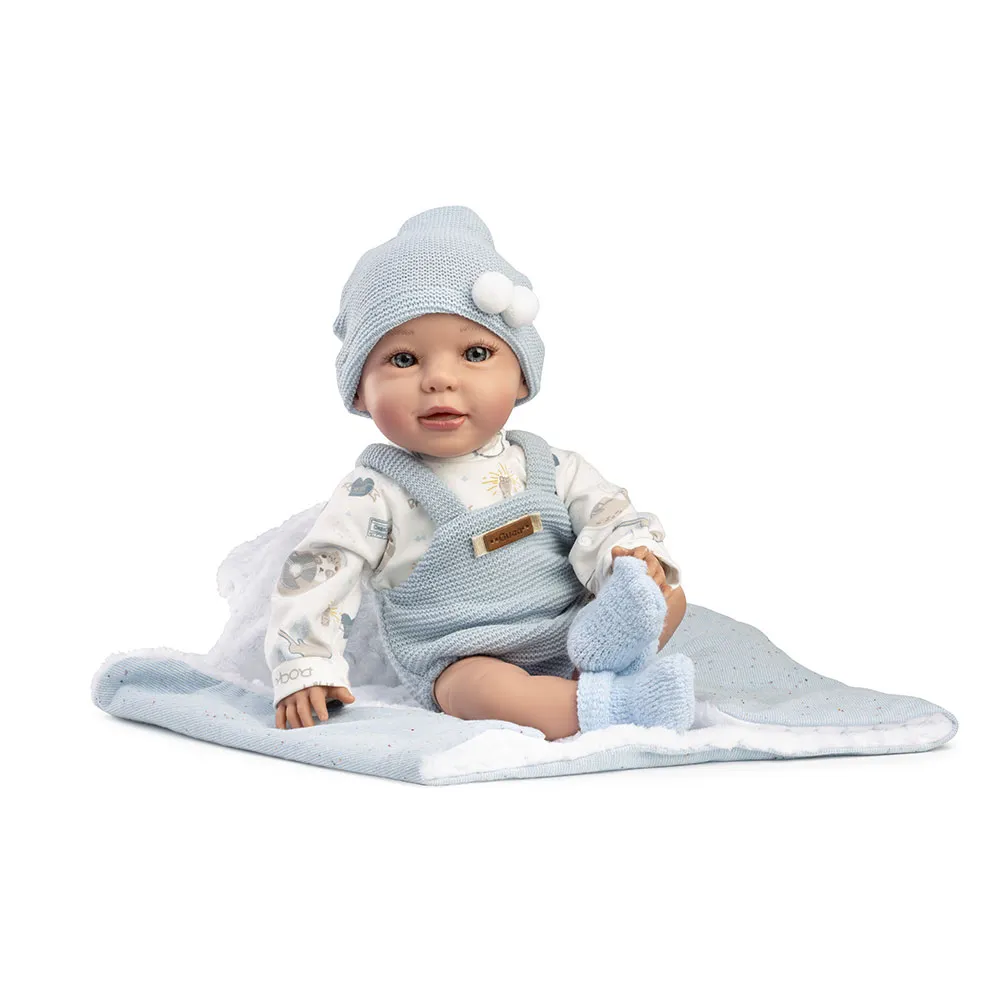 Muñeca Jairo con peso, no tiene pelo y mide 38cm.