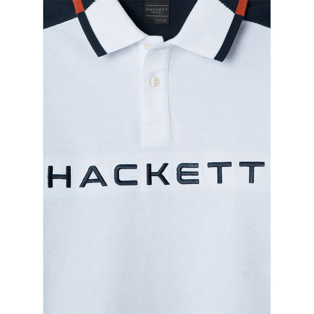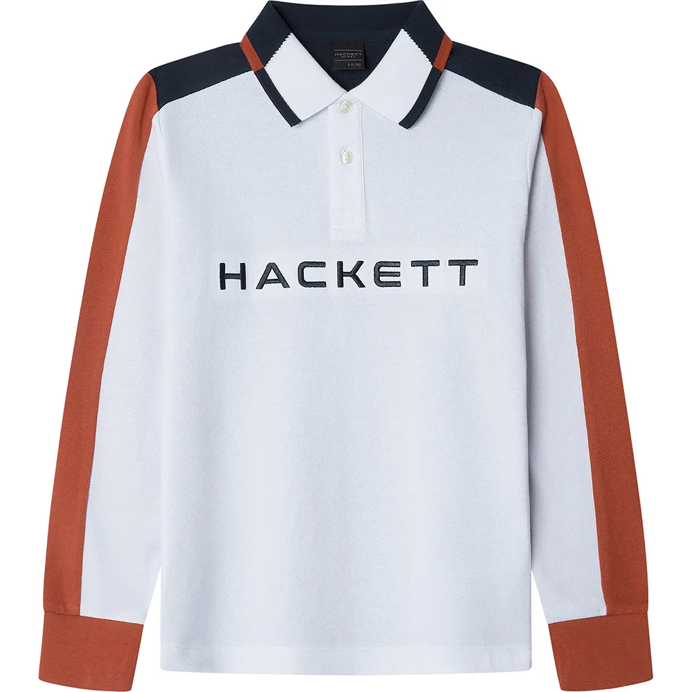 Interesante ribete multicolor en el cuello de punto plano, puños de punto plano acanalado y una gran marca Hackett de goma plana en el pecho.