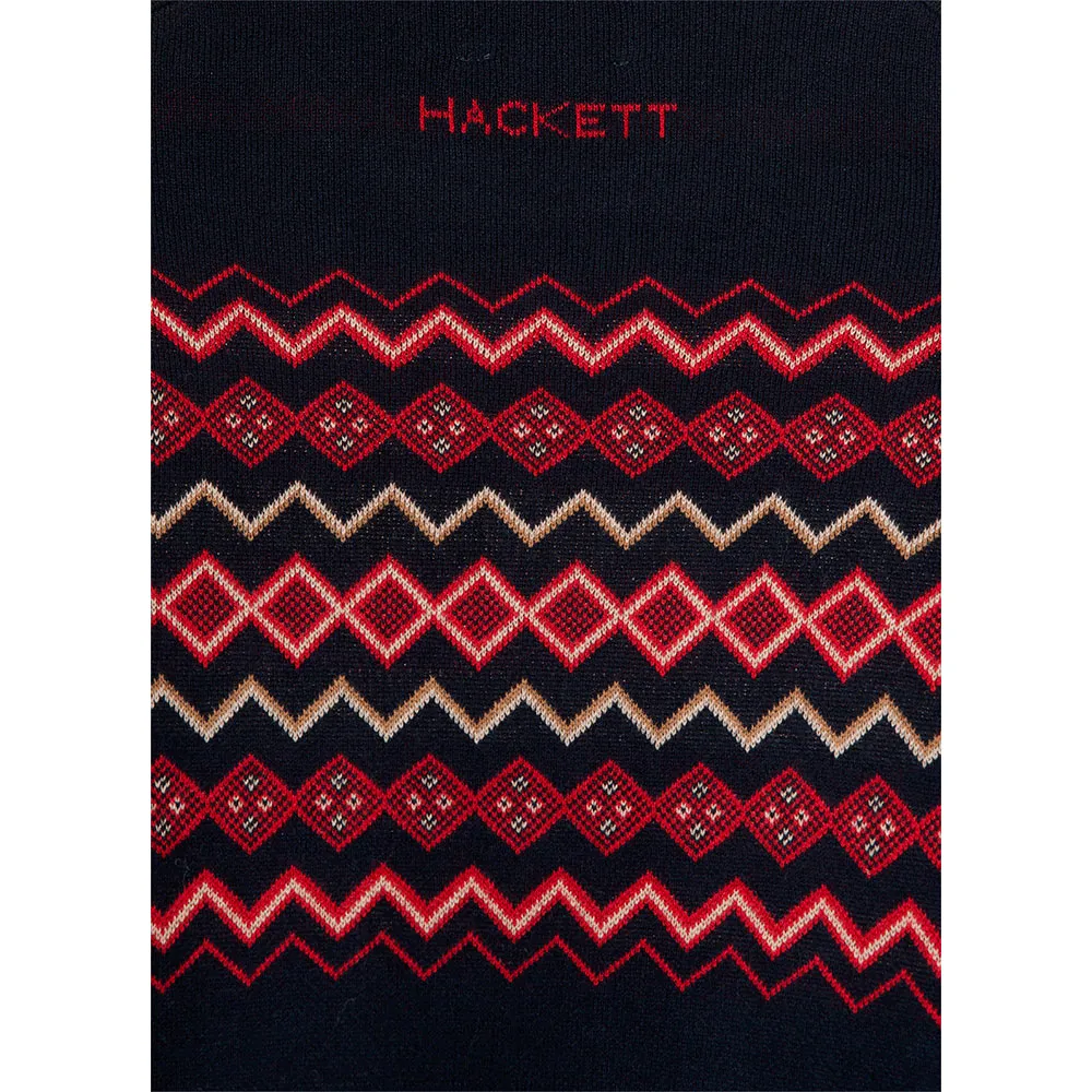 La característica destacada es el exquisito cuello redondo con patrón Jacquard con detalle de contraste en el interior del cuello trasero y la marca Hackett en el panel posterior. Este intrincado patrón tejido en el cuello añade un sutil toque de textura y estilo de diseño, mientras que el detalle de contraste en el interior del cuello es un sello distintivo de la artesanía de alta gama. La discreta marca Hackett en la parte posterior sirve como un guiño silencioso a sus prestigiosos orígenes, afirmando su autenticidad y calidad superior. Especificaciones Técnicas y Características: