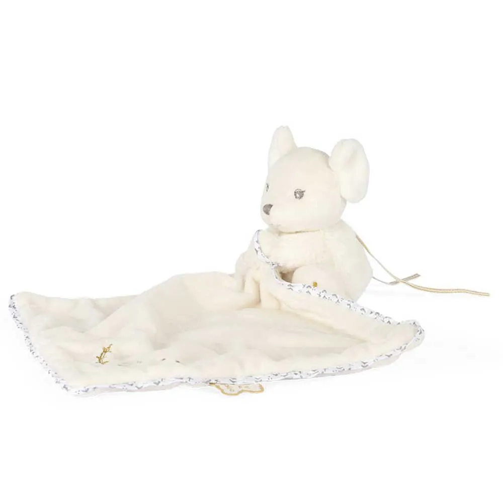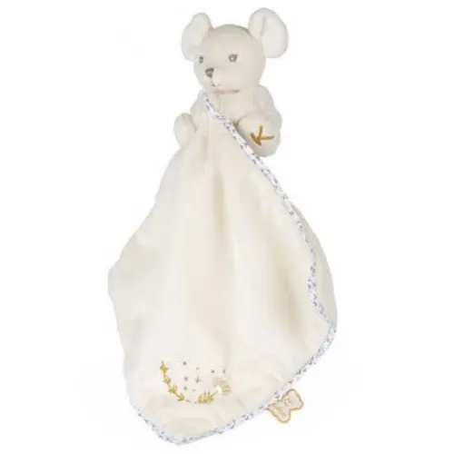 Este ratón doudou hará las delicias de los más pequeños con su linda cara y su suave pelaje. El doudou de 20 cm está adornado con bordados y un toque dorado para un acabado final sofisticado y elegante. Es la mejor opción para un regalo suave y precioso. Lavable en la lavadora. Presentado en una bonita caja de regalo que puedes personalizar con un mensaje en el espacio asignado debajo de la cubierta.