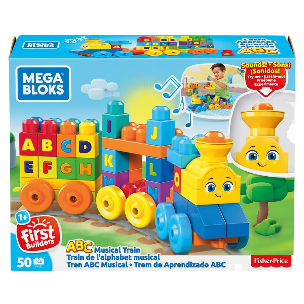 ¡El Tren de aprendizaje ABC emite sonidos reales y música! ¡Tu pequeño maquinista aprenderá las letras a toda máquina mientras construye un tren musical con las letras de la A a la Z! Conecta las tres bases con ruedas entre ellas y apila encima los bloques con letras para aprender el abecedario o incluso para construir palabras enteras.