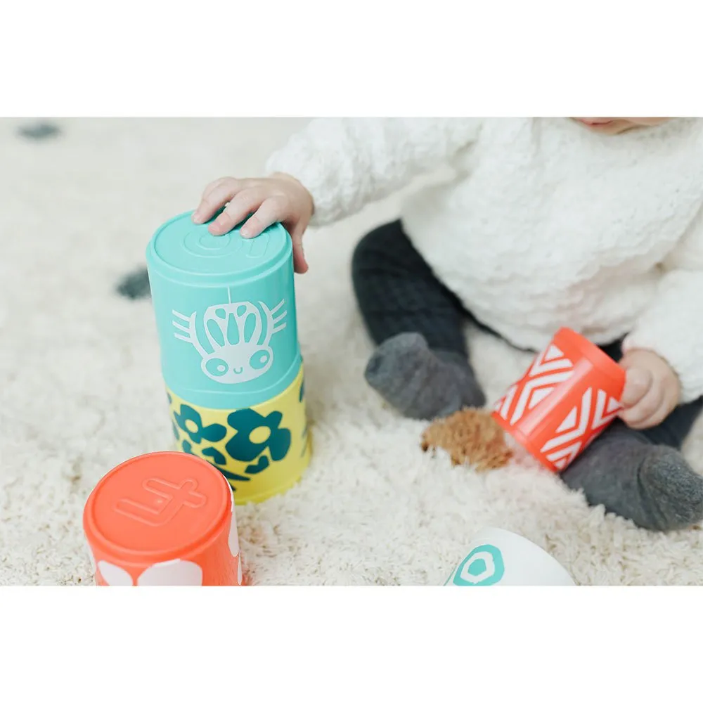 Tazas apilables A los más pequeños les encanta apilar y luego derribar, por eso, dentro de la colección Feel to Learn, presentamos un set de 6 cubos apilables fabricados con materiales ecológicos, lo que reduce el impacto ambiental.