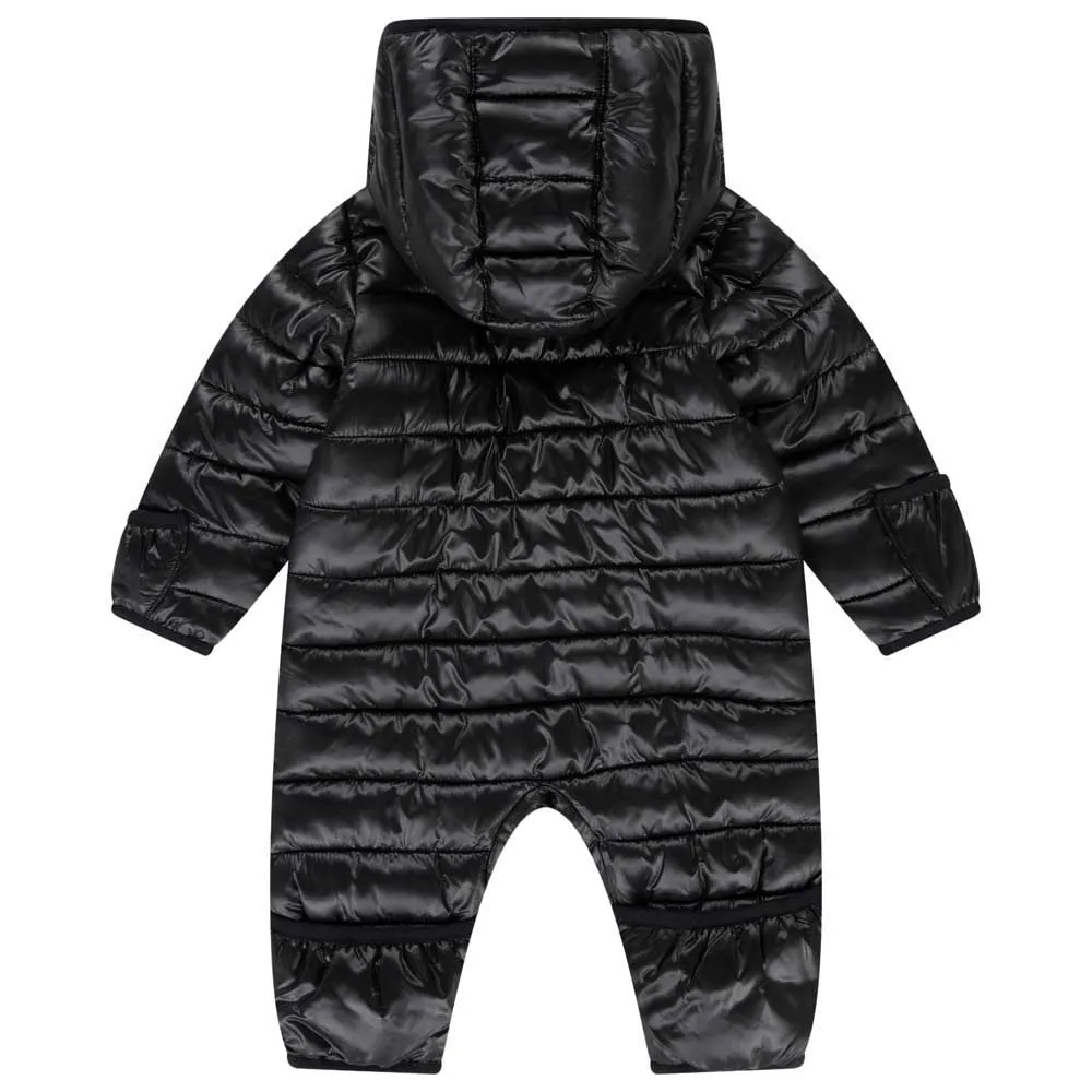 - El traje de nieve tiene un acabado resistente al agua para ayudar a mantener a tu bebé seco en lluvias ligeras y nieve.