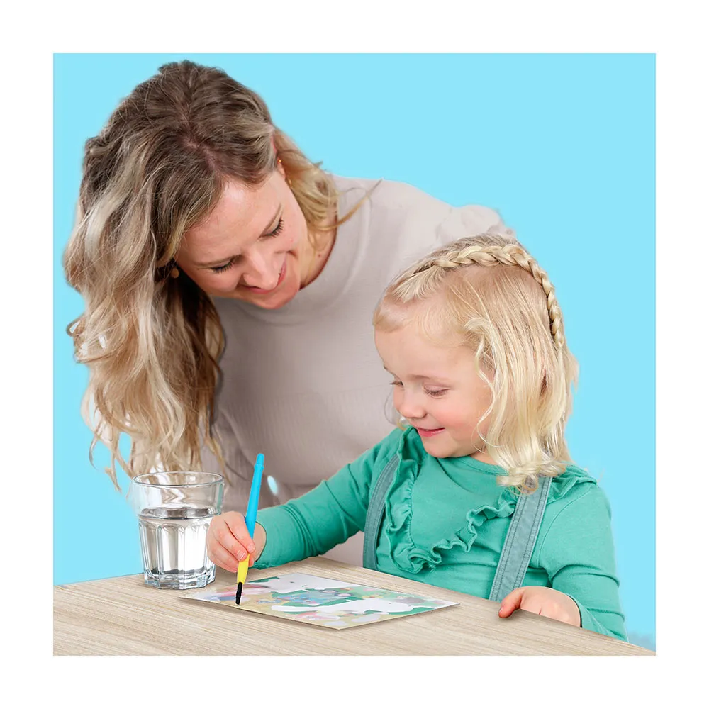 Revelación Mágica de Color: Los colores aparecen instantáneamente cuando el bolígrafo especial lleno de agua toca la página.