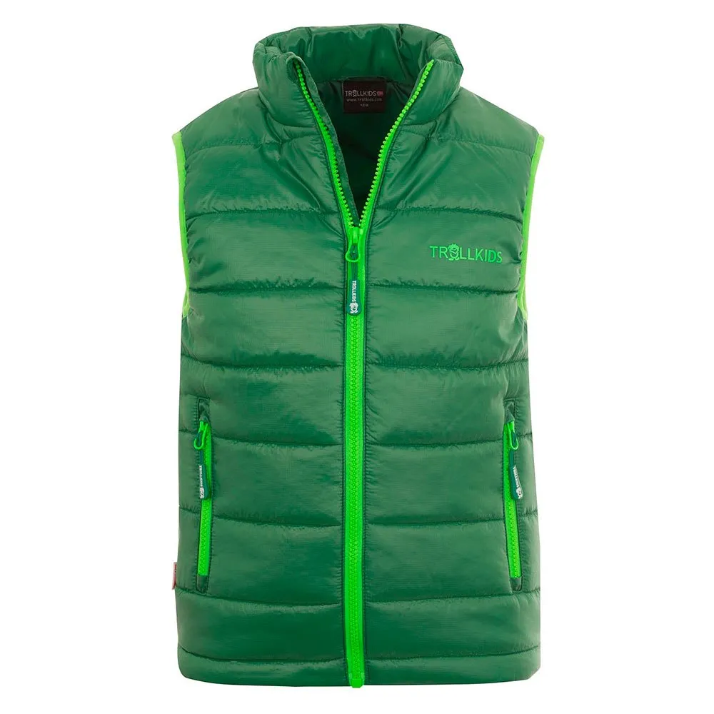 El KIDS TRONDHEIM VEST es un chaleco aislante maravillosamente cálido y extremadamente ligero (150 g en la talla 128).
