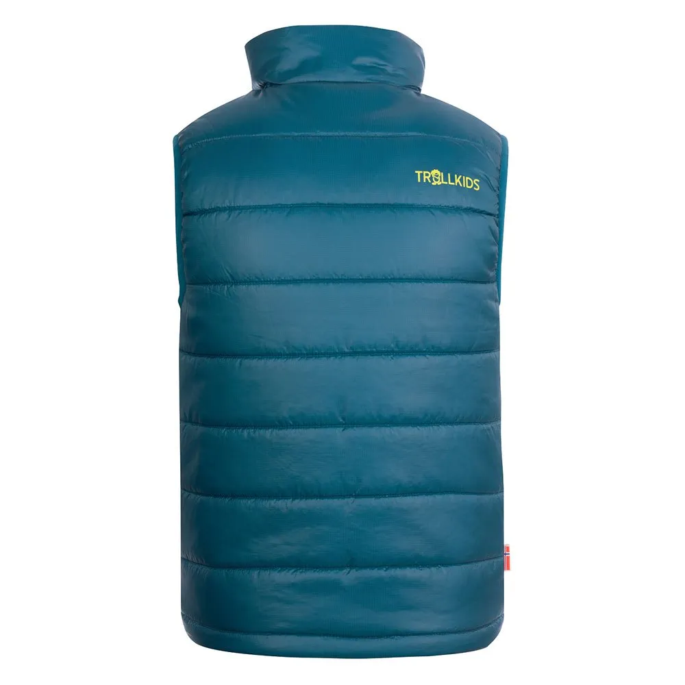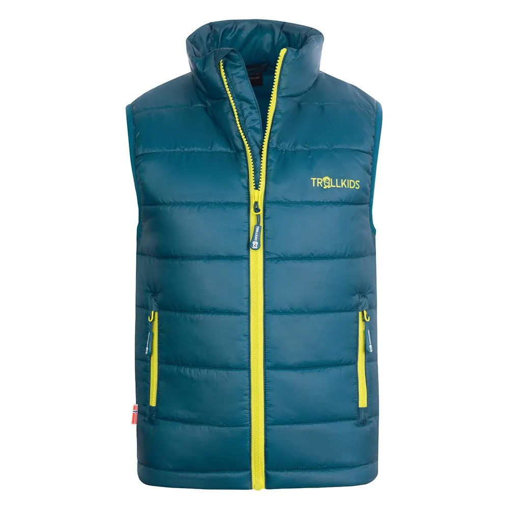 El chaleco KIDS TRONDHEIM VEST es un chaleco aislante maravillosamente cálido y extremadamente ligero (150 g en la talla 128).