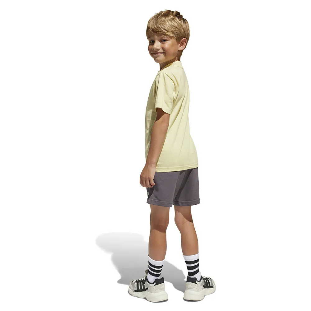 Suunniteltu lapsille, jotka ovat aina liikkeellä, tämä adidas t-paita ja shortsiasu on hauska ja urheilullinen.