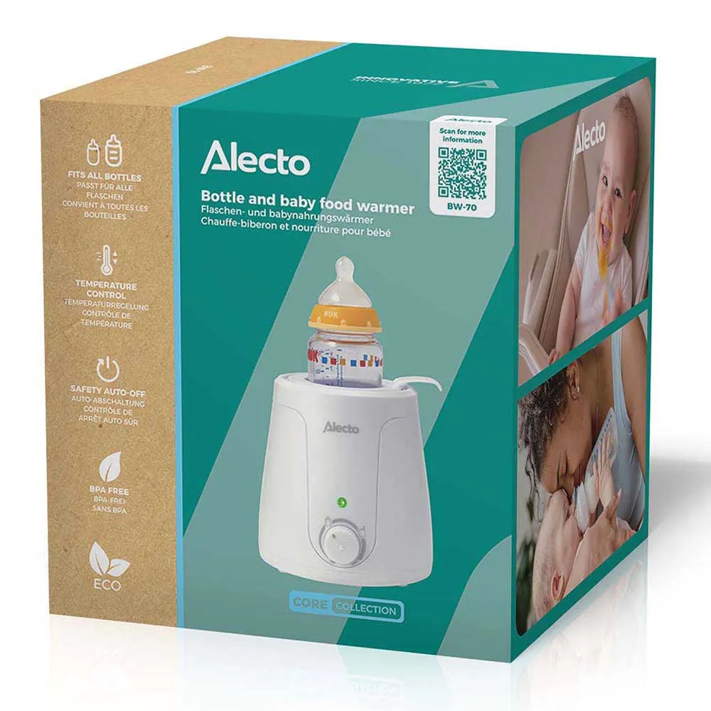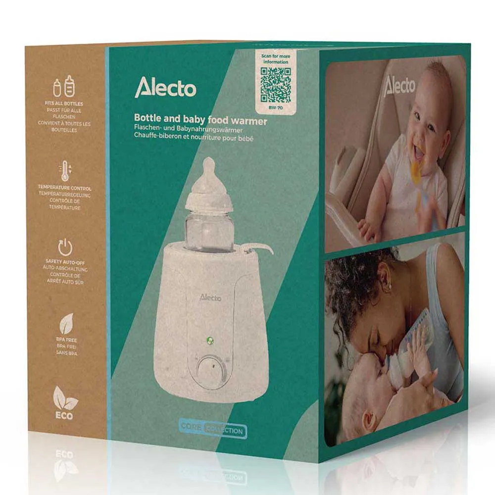 Monipuolisuus on sisäänrakennettu suunnitteluun. Tilava säiliö on suunniteltu sopimaan monenlaisiin pullokokoihin ja -merkkeihin sekä tavallisiin vauvanruokapurkkeihin. Tämä tarkoittaa, että Alecto BW-70 on luotettava kumppani ruokintamatkallasi ensimmäisestä vastasyntyneen pullosta aina kiinteiden ruokien käyttöönottoon asti. Sen yksinkertainen yhden painikkeen käyttö tekee siitä uskomattoman käyttäjäystävällisen, jopa niissä unenpuutteisissa varhaisissa päivissä.