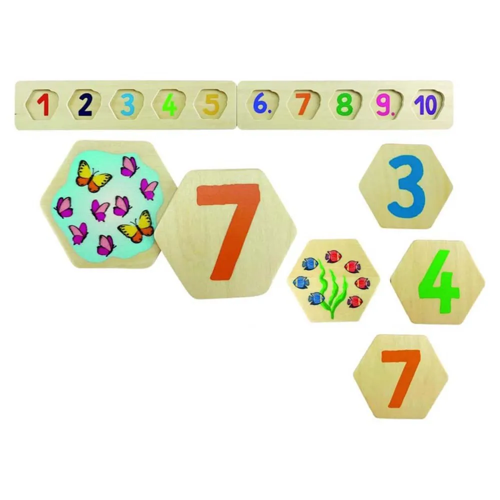 Onko numero sama kuin kuva? Jos numero on sama kuin kuva, molemmat kortit poistetaan pelistä ja pelimerkki asetetaan oikeaan numeroon numeroradalle.