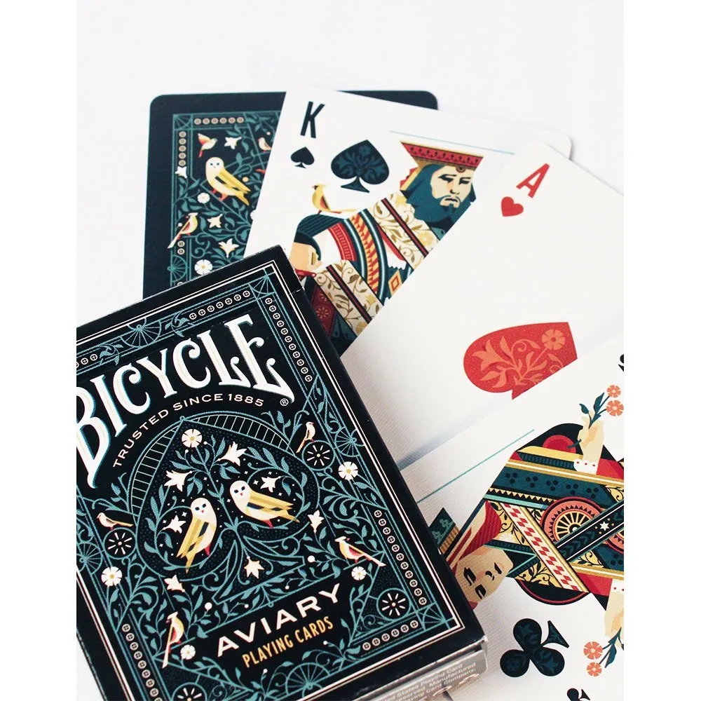 Anna seuraavan korttipelisi lentää Bicycle Aviary -pelikorteilla! Bicycle Aviary -pakka on kaunis ja monimutkaisesti suunniteltu pelikorttipakka, jossa on mukautetut kuvitetut kuvat, maat ja korttien taustat, ja se on täydellinen lisä kokoelmaasi.