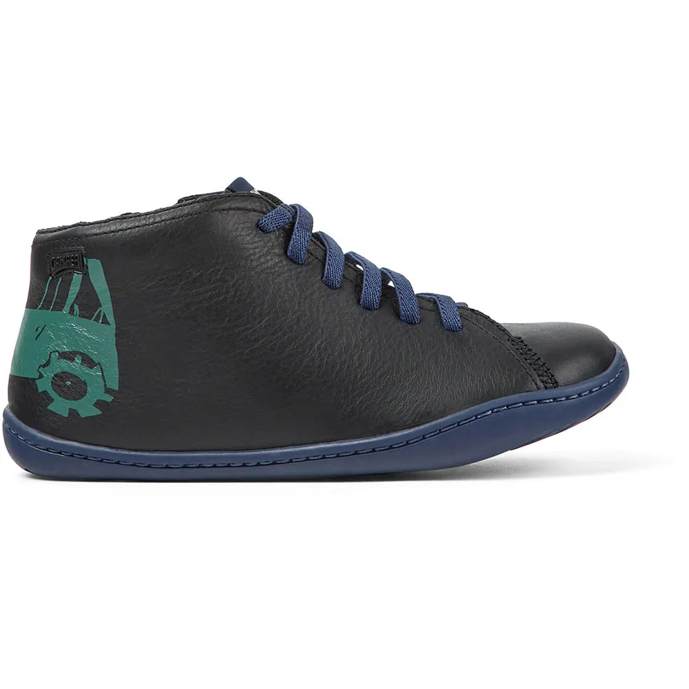 Mustat nahkaiset lasten nilkkurit kuminauhalenkeillä ja kumipohjilla (20 % kierrätettyä).