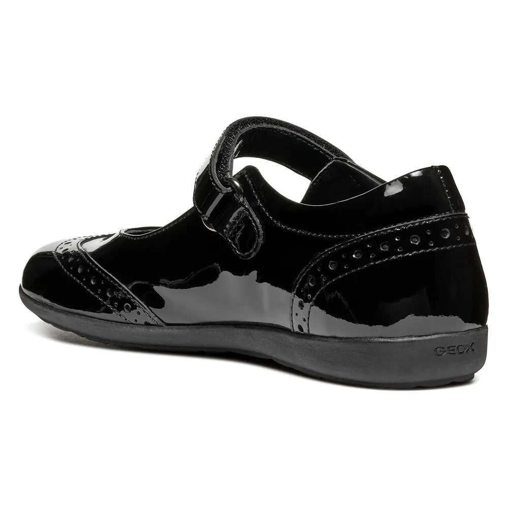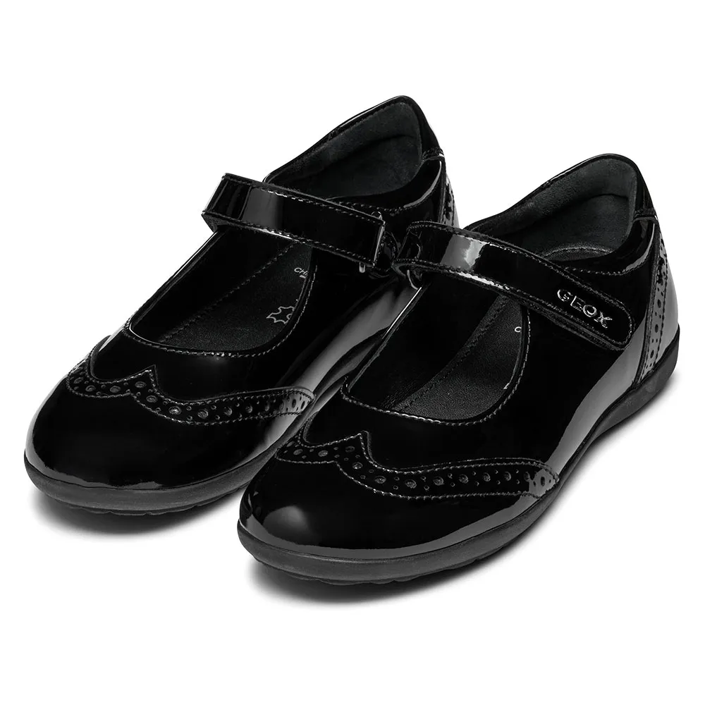 Iberide on tyttöjen ballerinakenkä, jossa on klassinen ja moderni muotoilu, jalkapöydän yli kulkeva remmi ja pyöristetty kärki.