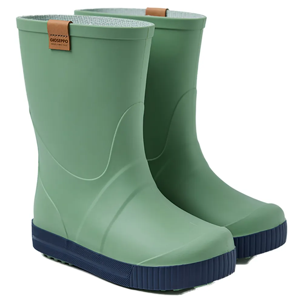 Yksiväriset kumisaappaat, joissa on pitävä pohja.