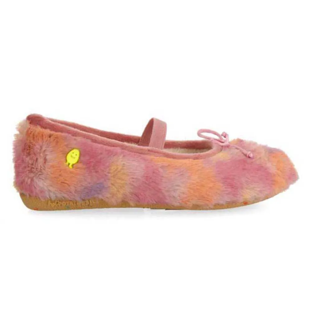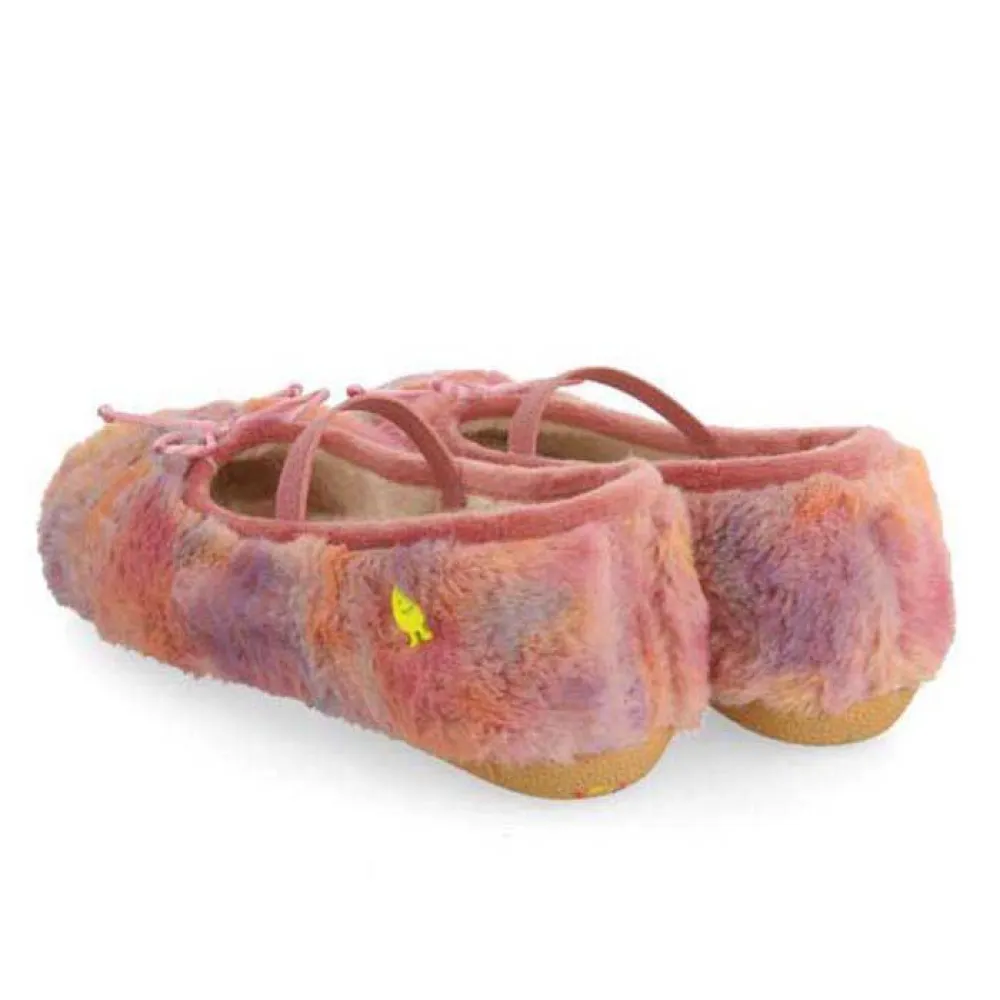 Perunat rakastavat värejä. Balettitossityyliset lasten tossut, joissa on joustavat nauhat jalkaterän yli. Valmistettu kierrätetystä PET-felleistä pehmeällä turkisreunuksella. Irrotettava pohjallinen on 100 % kierrätettyä polyuretaanivahvaa. Pohja on karamelliväristä luonnonkorkkia, jossa on värikkäitä EVA-kumipilkkuja.