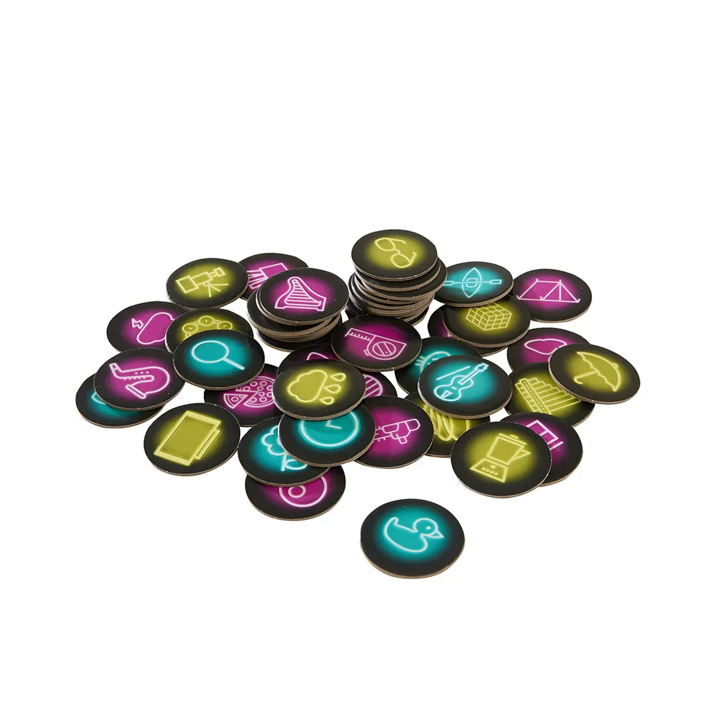 Yksi pelaajista valitsee salaa 2 laattaa ja esittää toisen niistä eleillä ja toisen äänellä.