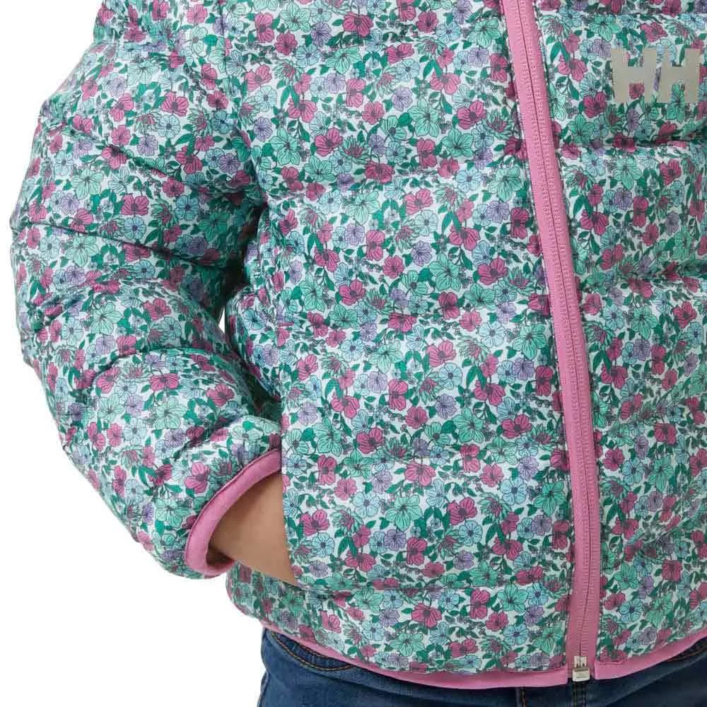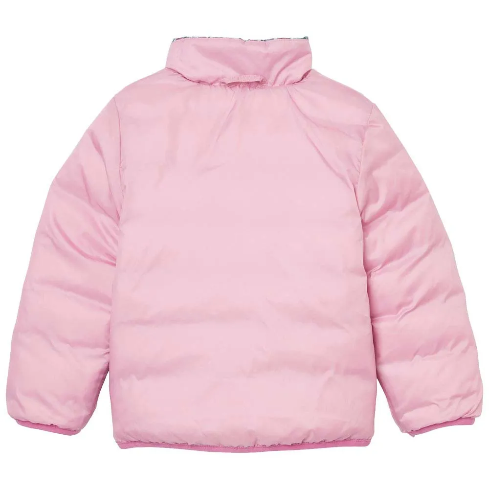 Käännettävä, topattu lasten takki, jonka mukana tulee pieni pakkauspussi ja joka on erittäin monipuolinen ja kevyt.