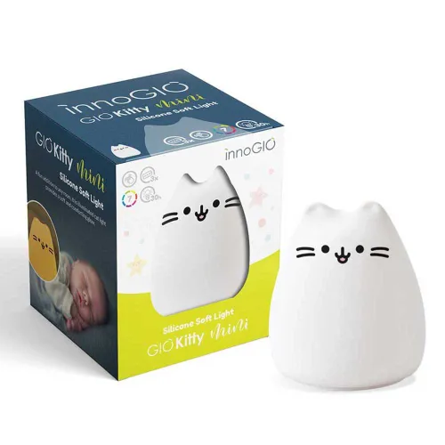 InnoGIO Kitty Mini -lamppu on pienin lamppu Kitty-sarjassa. Sopii täydellisesti vauvan pieniin käsiin. Pienen kokonsa ansiosta se sopii myös erinomaisesti matkustamiseen. Kitty Mini on loistava kumppani lapsesi kasvaessa. Lampun ystävällinen ja iloinen muotoilu saa lapsen rakastamaan sitä välittömästi. & Nbsp; Pehmeä ja rauhoittava valonhehku tuo oikean tunnelman lapsen huoneeseen. Valojen vaihtuvat värit auttavat lasta nukahtamaan helposti ja voittamaan kaikki pimeyden painajaiset.
