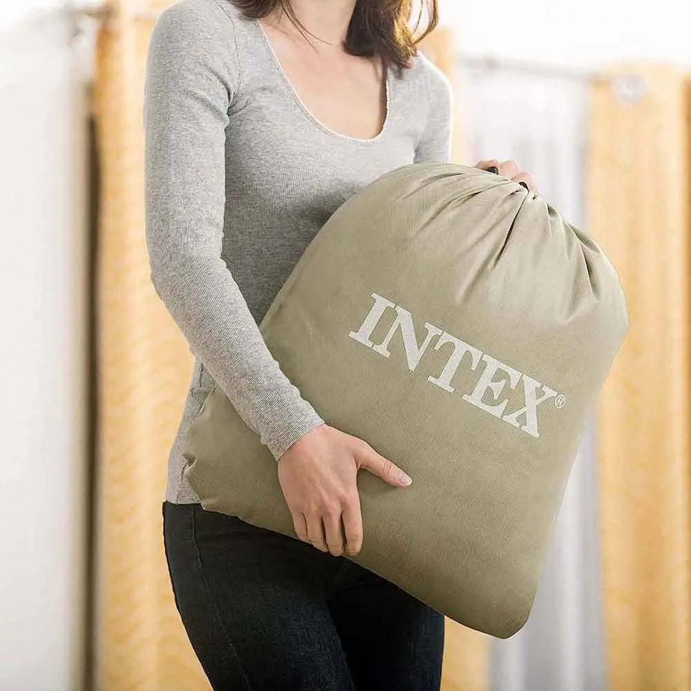Mukana tehokas käsipumppu, joka täyttää patjan noin 2 minuutissa, korjaustarra mahdollisten huokosten tai reikien korjaamiseen ja kantolaukku sängyn säilyttämiseen tai kuljettamiseen helposti ja mukavasti minne tahansa.