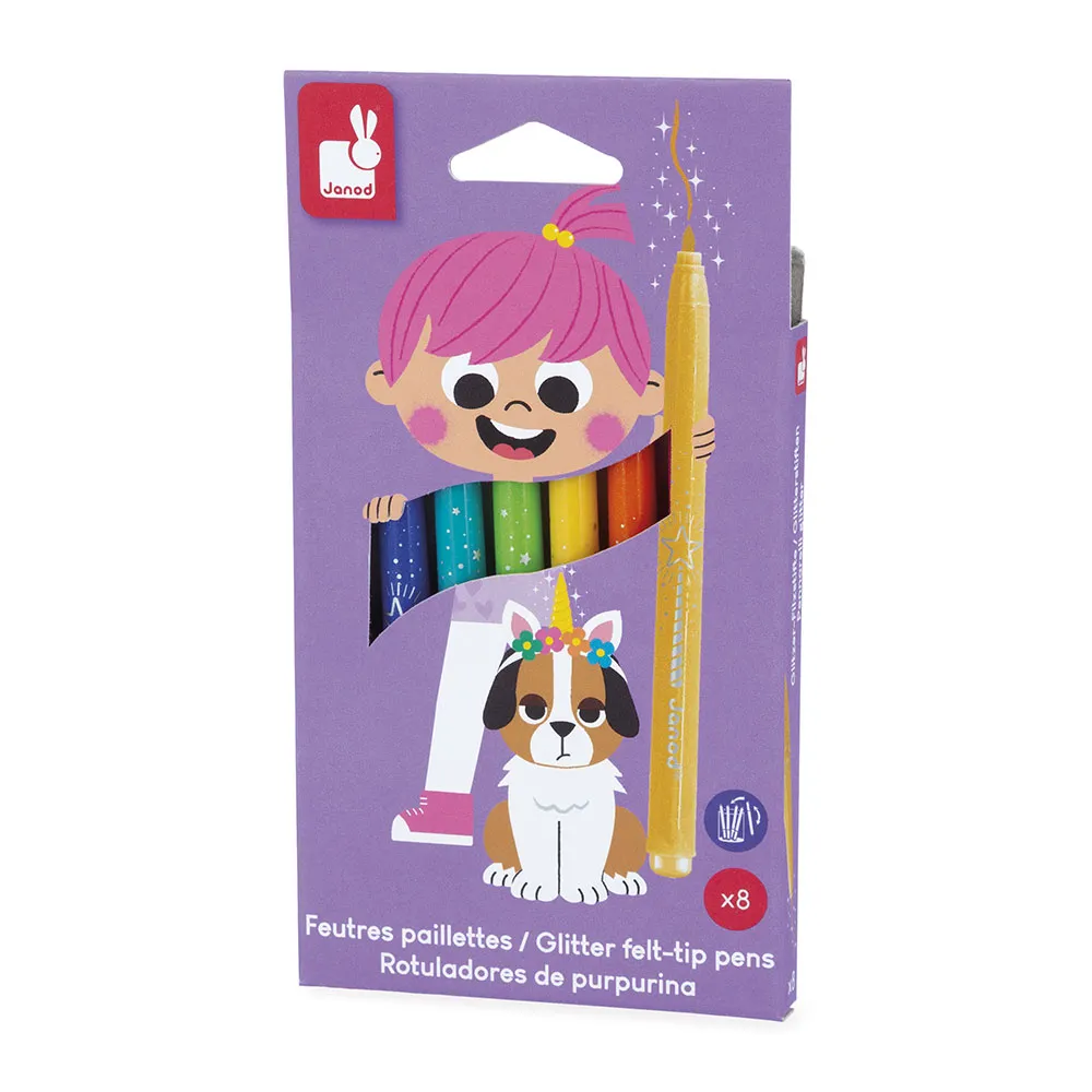 Lisää ripaus kimaltelevaa taikaa lapsesi luomuksiin näillä glitter-geelikynillä! Tämä kahdeksan kirkkaanvärisen kynän setti on täynnä glitteriä, mikä tekee niistä täydellisiä eloisiin piirustuksiin.