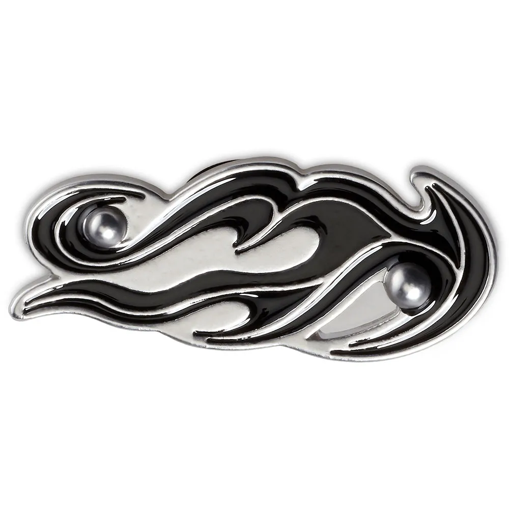 Rohkea ja dynaaminen muotoilu: Tulinen liekkisilhuetti on sekä ajaton että trendikäs, symboloiden intohimoa, energiaa ja kapinallista särmää. Monimutkainen yksityiskohtaisuus ja heijastava viimeistely varmistavat, että se kiinnittää huomion ja kohottaa kenkäpeliäsi.