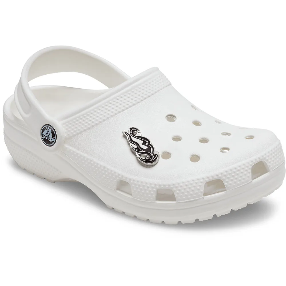 Lisää kenkiisi persoonallisuutta tällä Techno Bling Flame Jibbitz™ -koristeella. Se on täydellinen lisä suosikkiklommeihisi, sandaaleihisi ja muihin. Tämä yksi, vaikuttava koriste sisältää näyttävän liekkikuvion, joka on huolellisesti valmistettu erottumaan. "Techno Bling" -efekti herää eloon monisärmäisen, kimaltelevan pinnan ansiosta, joka vangitsee ja heijastaa valoa joka kulmasta luoden häikäisevän vaikutelman jokaisella askeleellasi. Se ei ole vain asuste; se on keskustelun aloittaja, pieni yksityiskohta, joka vaikuttaa valtavasti kokonaisilmeeseesi.