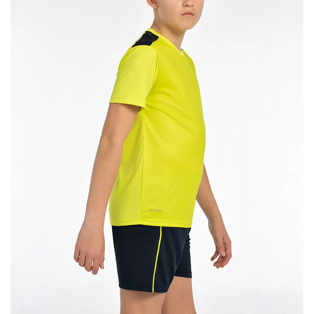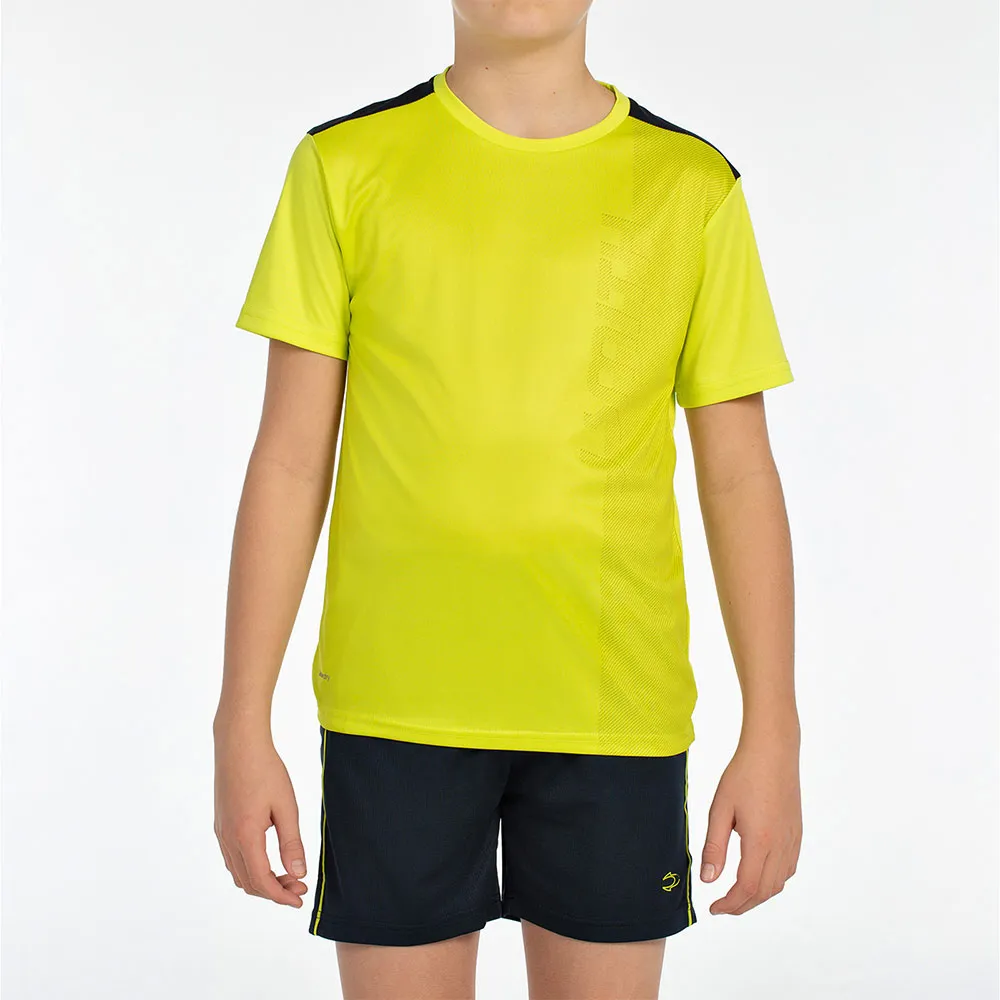 Pojan asu polyesteri interlock -paidalla, jossa grafiikka edessä ja kontrastivärinen kaulus.