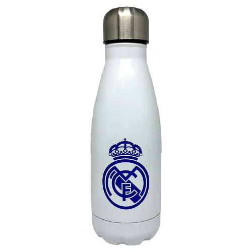 teräspullo, jossa on yksivärinen Real Madridin vaakuna.